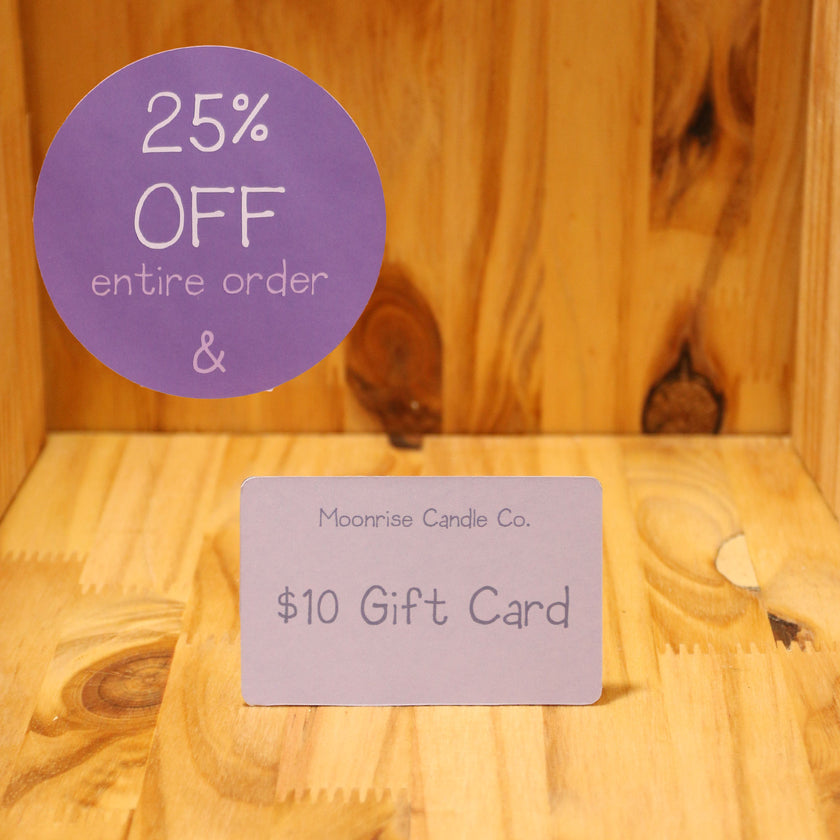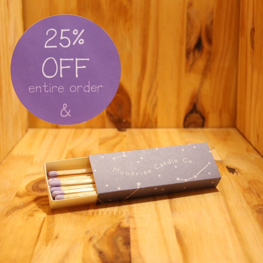 Every order placed receives one entry into a raffle to receive FREE Moonrise candles for a year